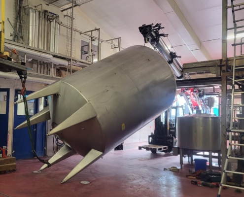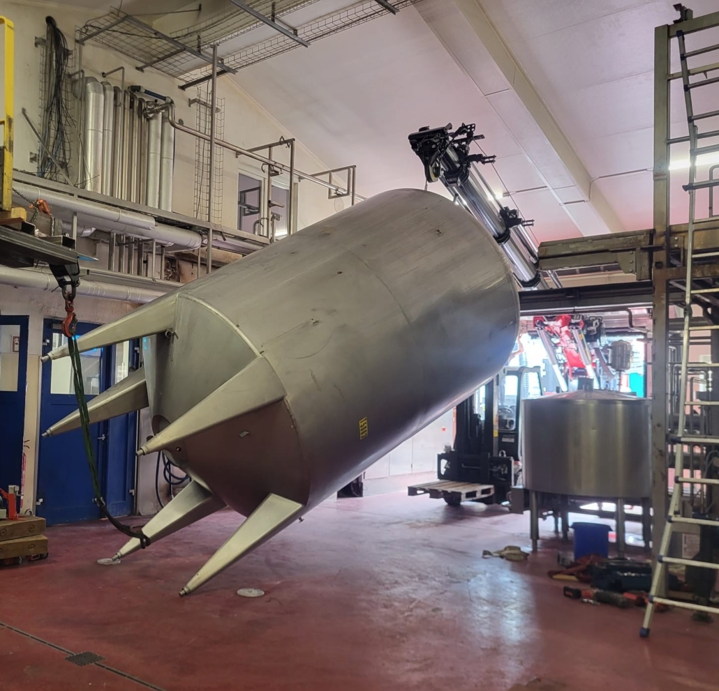 Die Behälter wurden ohne Öffnen der Gebäudestruktur aus dem Gebäude ausgebracht. Durch dieses Vorgehen konnte ein Produktionsausfall und massive Kosten vermieden werden.