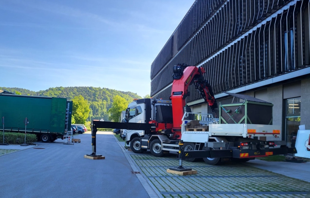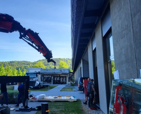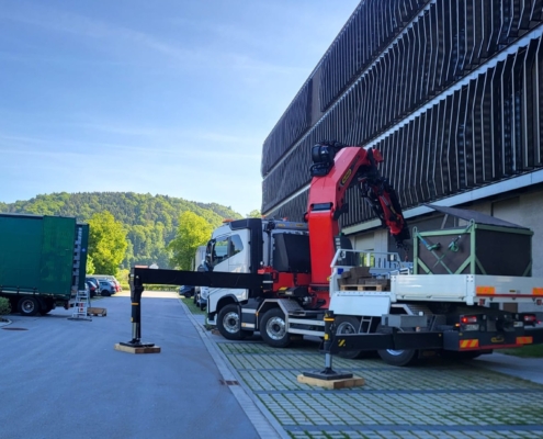 Anlieferung der Maschine aus dem Ausland zu unserem Betrieb.