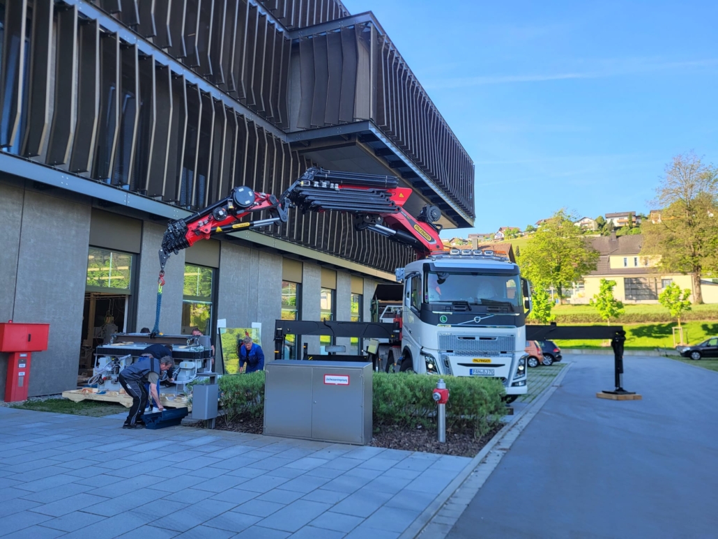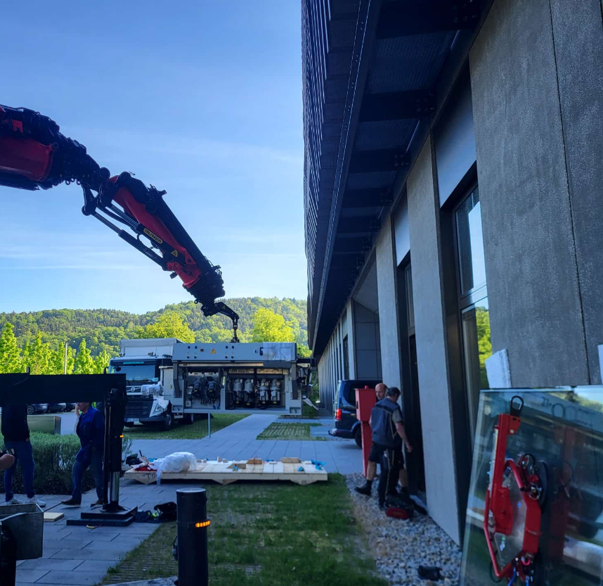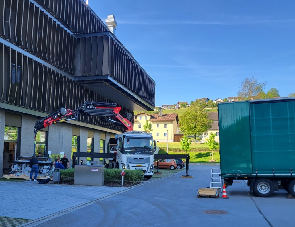 Eine schwere Maschine soll in einen Raum eingebracht werden, der eine normale Einbringung nicht ermöglicht.