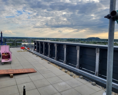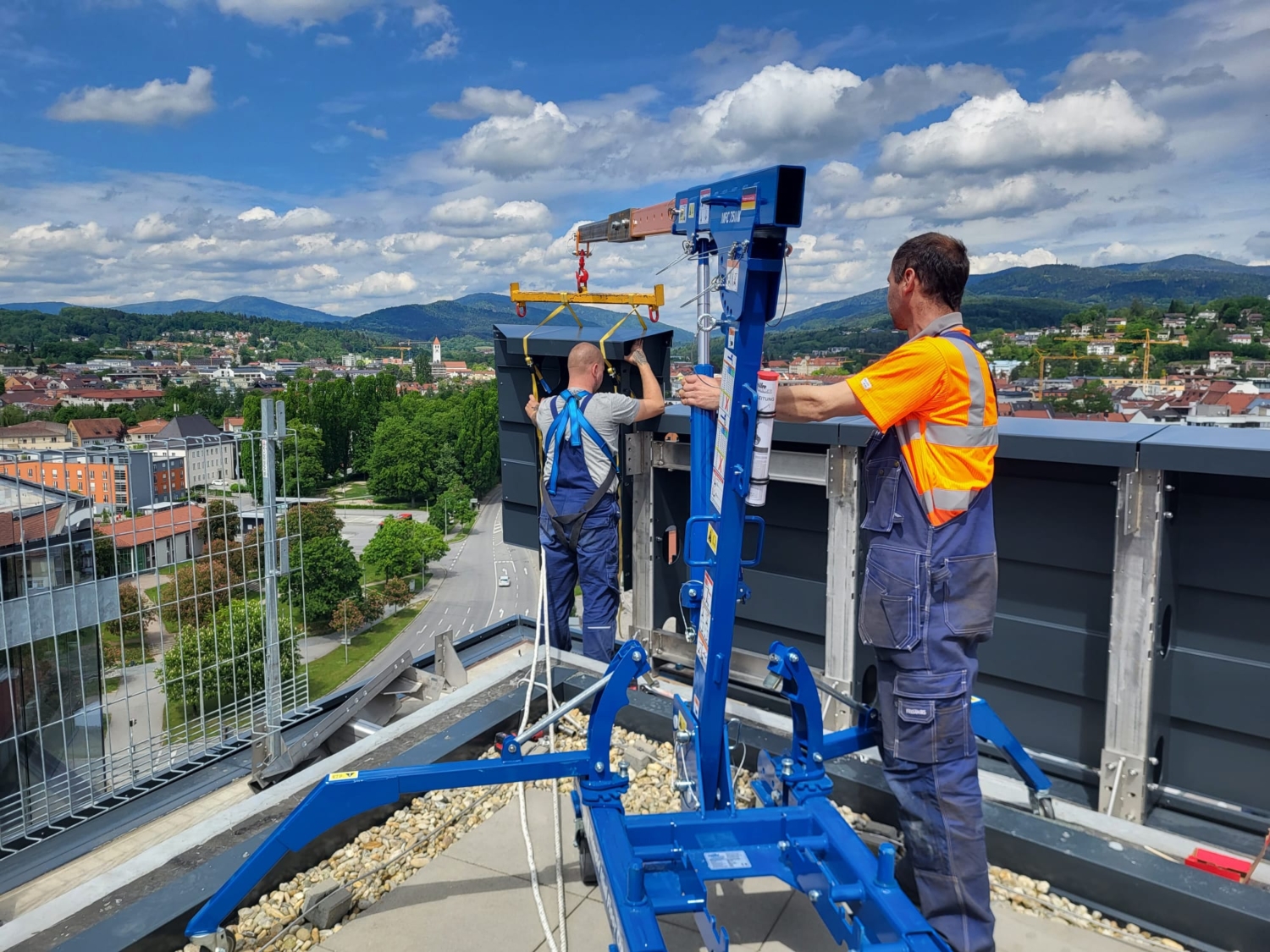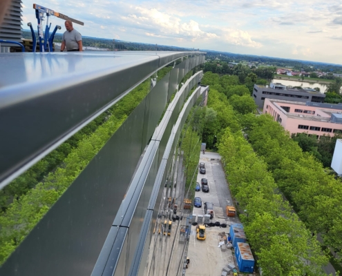 Die Arbeiten wurden unter Einhaltung hoher Sicherheitsstandards in großer Höhe ausgeführt um einen umfangreichen Montageaufwand zu bewerkstelligen.